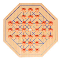 Durable wooden octagon solitaire board game, 30cm beech wood puzzle toy for logic training, family fun, and OEM custom.