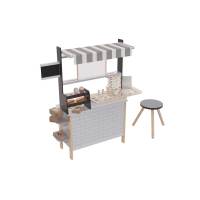 2 in 1 Kids Play Kitchen and Restaurant. Comes with coffee maker, ice creams, breads, tableware, chair etc.