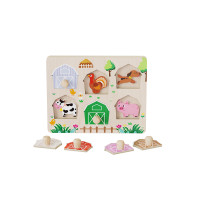 Forestoy Farm Peg Puzzle – 24.5×19.5cm wooden board with chunky knobbed pieces featuring barns, cow, pig, turkey, dog and more.
